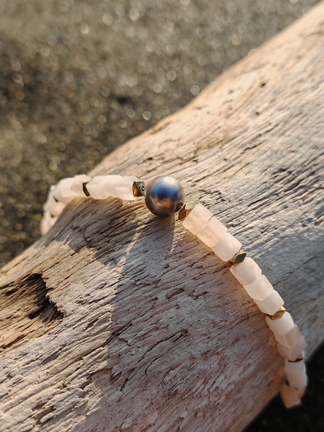 Bracelet delicat avec perles de Tahiti et aventurine rose, pierre de douceur, d'amour et de tendresse.